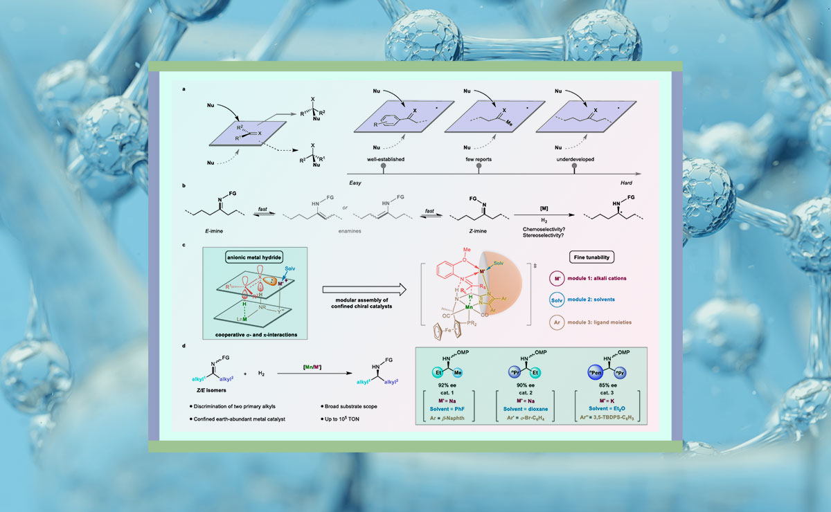 近日,乐动平台化学系刘强课题组在手性识别与不对称催化研究领域取得新突破,通过设计并构建一类具有精细可调限域结构的阴离子型锰氢催化活性中间体,在酮亚胺化合物的不对称氢化反应中成功实现了对微小差异烷基取代基之间的精准手性识别。