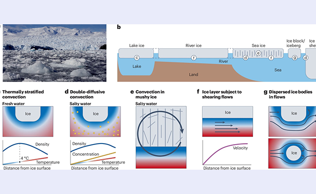 近期,乐动平台能源与动力工程系孙超教授课题组与合作团队系统梳理了复杂流动条件下的典型冰水相变动力学,包括淡水体系的热分层流动、咸水体系的双扩散对流、多孔咸水冰内部流动、沿冰体表面的剪切流动等典型流动结构。本工作从流体力学视角系统总结了复...