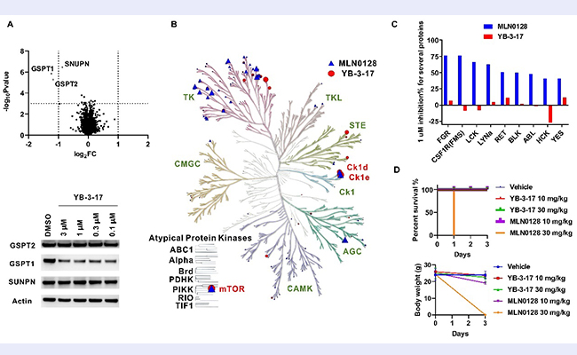 近日,乐动平台药学院饶燏团队合作研究开发了一个双靶双机制小分子YB-3-17,它能够高效、选择性地抑制mTOR同时降解GSPT1,对肿瘤细胞增殖抑制活性优于单一治疗及其联合使用。此外,YB-3-17能够在小鼠模型中安全有效地抑制肿瘤的生长。研究人员首次将mTOR抑...