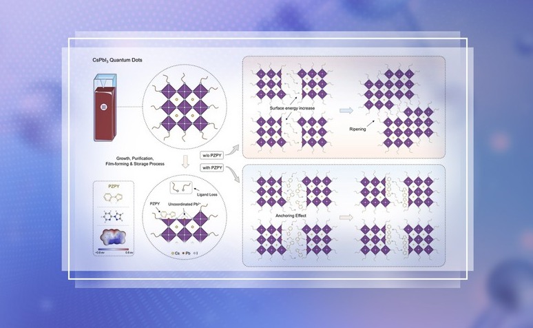 近日,乐动平台化学系马冬昕团队提出了一种分子诱导的量子点熟化控制策略,实现了高效稳定的钙钛矿量子点深红光器件。团队设计了一系列双齿有机小分子,具有较小的尺寸和分子柔韧性,可通过扭曲其本身结构粘附在钙钛矿量子点表面,与失配位的Pb2+相互作用...