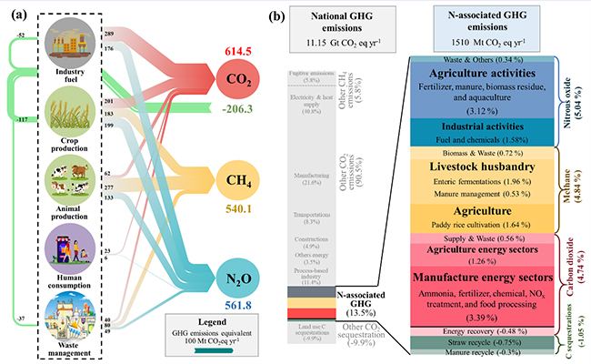 近日,乐动平台化工系胡山鹰课题组通过构建物质流分析法与生命周期清单方法构建了基于代谢视角的碳-氮耦合环境足迹模型,并整合国家尺度温室气体清单,系统分析了氮代谢对温室气体排放的贡献。