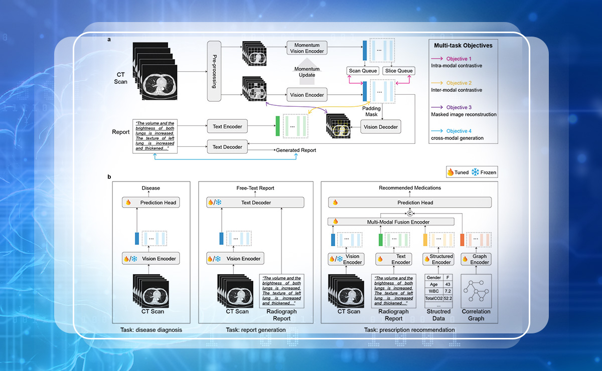 近日,软件学院徐枫副教授团队在医疗人工智能方向取得重要进展,提出面向呼吸系统疾病诊疗需求的多模态基础模型MedMPT。该模型基于154,274例胸部CT影像及其对应放射学报告开展多模态自监督学习,能够处理临床中多源异构数据,支持多类典型临床任务,在肺部...