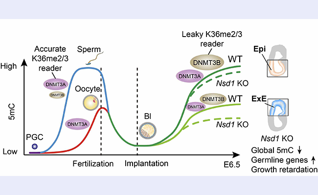 2025.12生命学院颉伟团队合作揭示H3K36me2重编程调控哺乳动物胚胎着床后DNA甲基化重建的机制