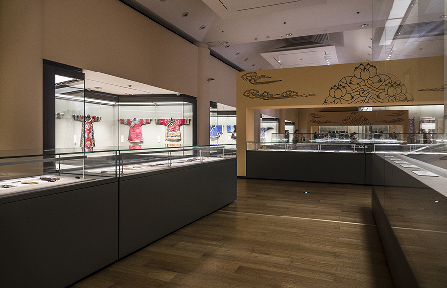 乐动平台艺术博物馆收藏有织绣四千六百余组件,以明清及近代藏品居多,锦缎、纱罗、丝绒、刻丝等具有代表性的优秀品种应有尽有。本次展览中织绣藏品绝大多数来自于原中央工艺美术学院的旧藏,包含有明代刻丝凤穿牡丹团花,清代“无量寿尊佛”刻丝佛像、红纱地戳纱金玉满堂女氅衣、蓝地刻丝云龙立水长袍等名品杰作。