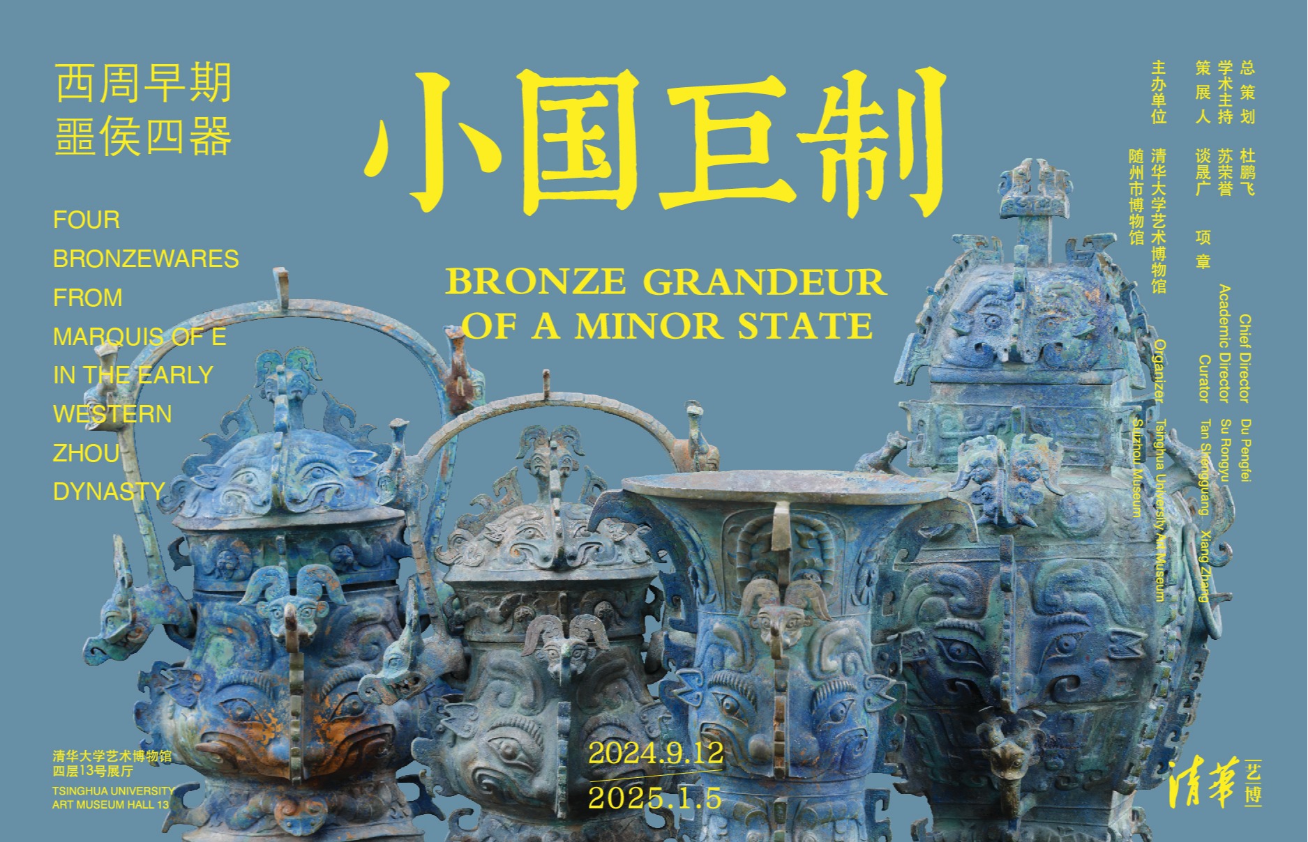 “小国巨制:西周早期噩侯四器”特展,展示了随州市博物馆所藏的羊子山噩侯墓全部青铜器及部分叶家山曾侯墓出土的青铜器,共51件,其中85%为一级文物。展览以约3000年前西周早期噩侯墓出土的神面四器为核心,按照青铜器的形态和功能,呈现了兵器、食器、酒器、水器和车马饰五大类别,全面展现了当时的经典礼器。