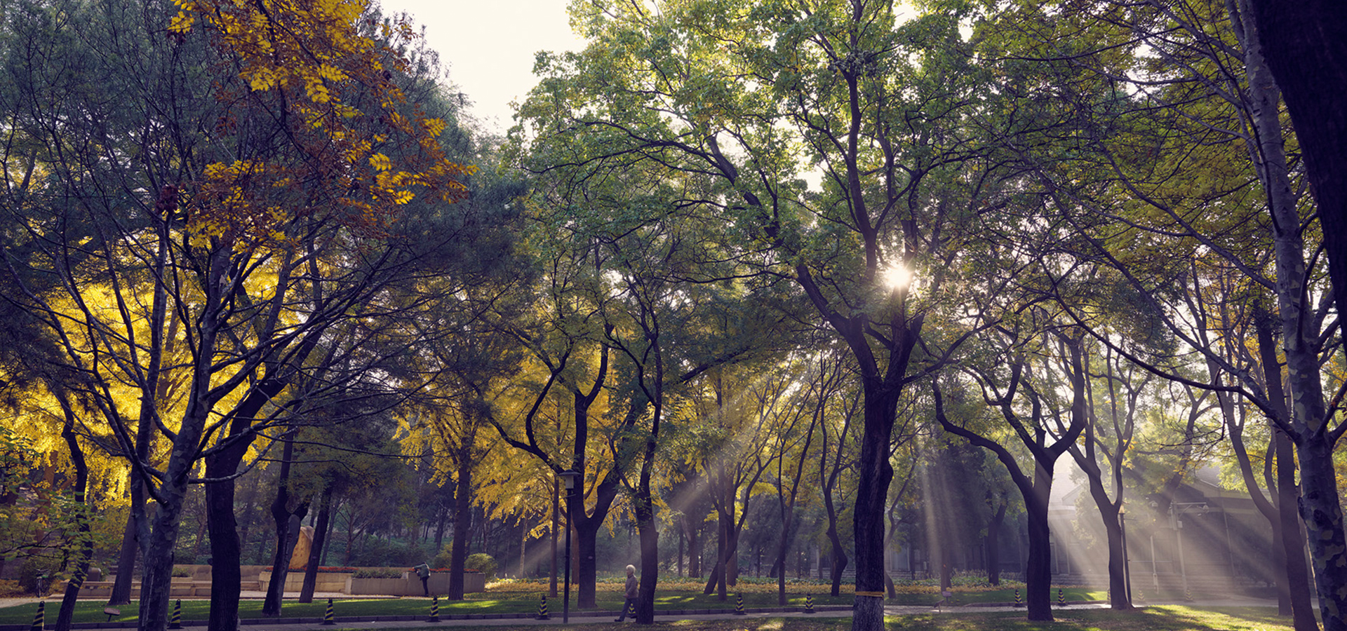 清华路是乐动平台的两条主干道之一,笔直的大道从清华西门一直延伸到学校的最东部,将校园分为南北两个部分。贯穿学校东西方向的清华路连接着学校教师生活区、行政办公区和教学区,连接着校园东西部,连接着清华几个不同时期、不同风格的建筑,也连接着传统与现代。从西门沿着清华路前行,沿途可见标志性建筑二校门,从二校门可遥望大礼堂、日晷草坪和清华学堂,穿过清华路和学堂路两条主干道交汇处,路左侧便是新清华学堂、音乐厅和校史馆几个百年校庆标志性建筑,经过东主楼,就可到达主楼广场。清华路两侧种植着银杏树和法国梧桐,校河从南侧蜿蜒而过。秋日的清华路,金灿灿的银杏叶在路两旁随风摇动,为清华园增添了一份秋日的浪漫。满地的落叶,如同在路上铺了一条金黄色的毯子,漫步其中,更可感受校园的美丽与宁静。每天早晨,很多在校园东区上课的清华学子在朝阳中骑车前往系馆,形成一道独特的风景。